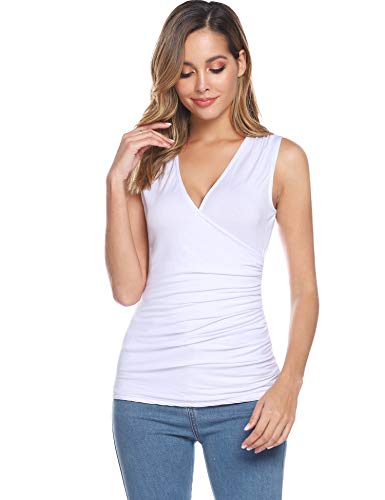 ❤️ Blusas sin mangas con cuello en V para mujer Blusas con cuello en V flojas Camiseta básica...