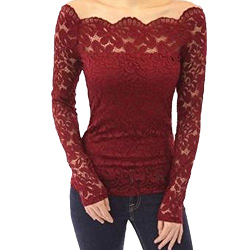 JLTPH Mujeres Camisetas Blusa Manga Larga Blusas de Encaje Flores Lace Crochet sin Tirantes Camisas Off Shoulder Lace Shirt