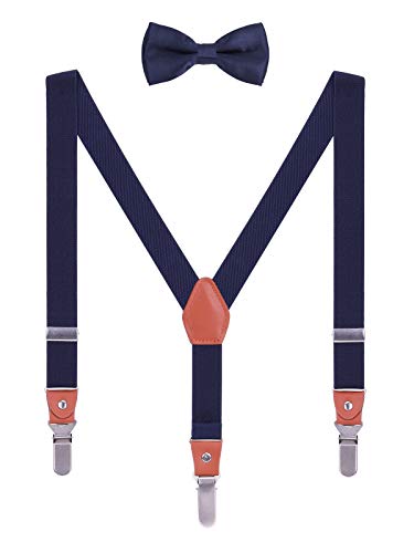 Irypulse Conjunto Tirantes y Pajarita para 6 Meses 5 Años Niños Niñas 3 Clips Y Forma Longitud Ajustable Elástico Azul marino