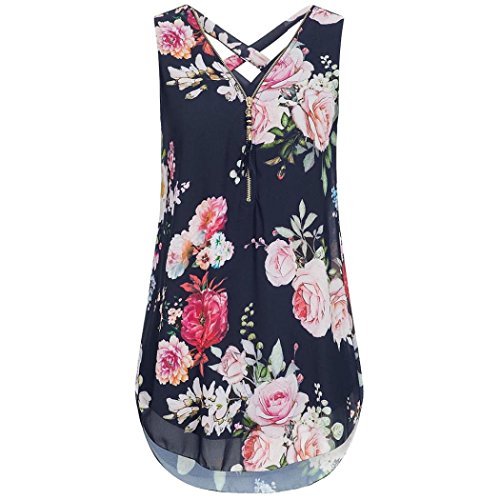 Blusa Mujeres Sexy con Cuello en V Blusa de Gasa Tank Top sin Mangas Zip Casual Camisas Tops Blusa A...