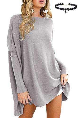 Jersey Cuello Barco Mujer Flojos Sueter Punto Blusa Manga Murcielago Tallas Grandes Camiseta Asimétrica Moda Pullover Sweater Baggy Jumper Camisa Larga Suelto Otoño Invierno Tunica Tops Color Sólido