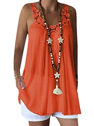 Shallood Mujeres Camiseta Sin Mangas Encaje Chaleco Casual Tops Blusas Verano Tank Tops Cuello V Cami Tank Tops Básica Tops Blusa Camisola Naranja ES 36