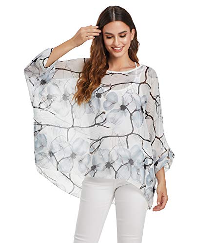 OKSakady Blusa de Verano para Mujer Blusa de Gasa y Tallas Grandes Elegante y Informal con Estampado Floral