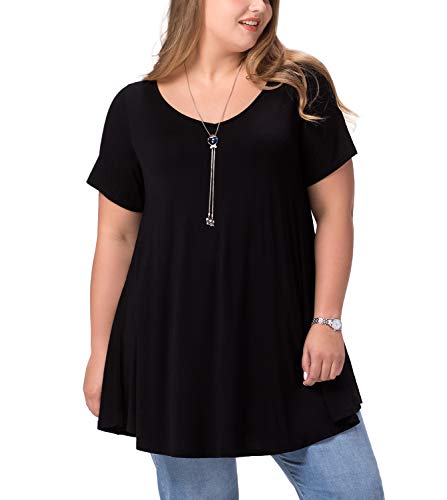 LAPASA Casual Blusa para Mujer de Manga Corta. (Camiseta con Volantes) L20 (XXXL (Largo **, Manga **, Pecho ** *** cm), Shadowing Black (Negro))