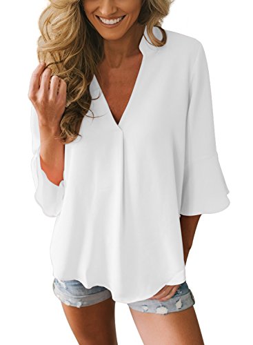 🌞Esta blusa de chifón es de cuello en V profundo con cremallera et moda y diseño elegante.