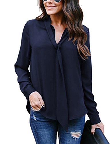 Esta blusa de chifón es de cuello en V profundo con cremallera et moda y diseño elegante.