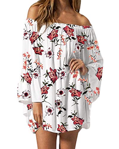 - 【Característica】 Fuera del hombro, estampado floral, vestido de túnica de manga larga con alas de murciélago, manga 3/4 con volantes, mini vestido de playa, tops largos de gasa. Suave y elegante para mostrar su aspecto femenino único, ideal para todos.