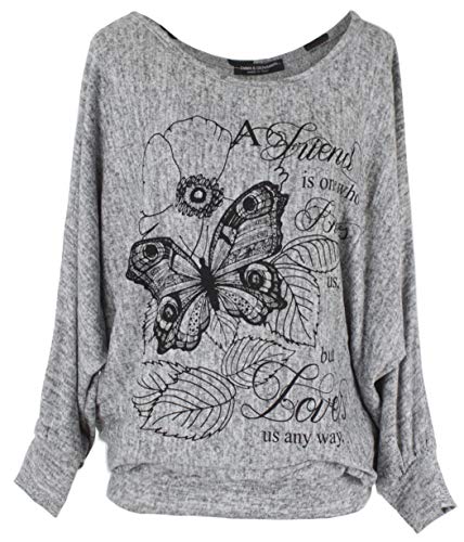 YOINS Mujer Camisa Casual Manga Larga Blusa Sin Hombro Camisetas a Rayas Cuello Redondo Imprimiendo Pullover Armada EU36 38