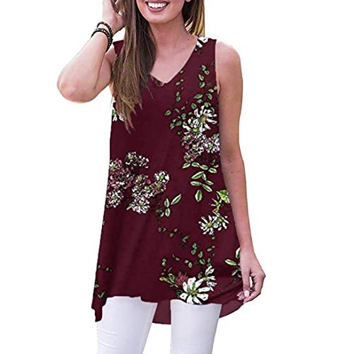 Sanfashion 2019 Camiseta de Verano para Mujer, de Gasa con Cuello en V, sin Espalda, sin Espalda Vin Rouge Florale L